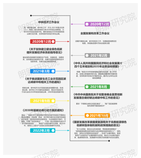 2020年9月,習(xí)近平主席在第七十五屆聯(lián)合國大會中提出“雙碳”戰(zhàn)略目標(biāo),隨后多個政策文件密集出臺,給出了“雙碳”建設(shè)、綠色低碳轉(zhuǎn)型的指導(dǎo)意見和發(fā)展目標(biāo)等,如圖1所示: