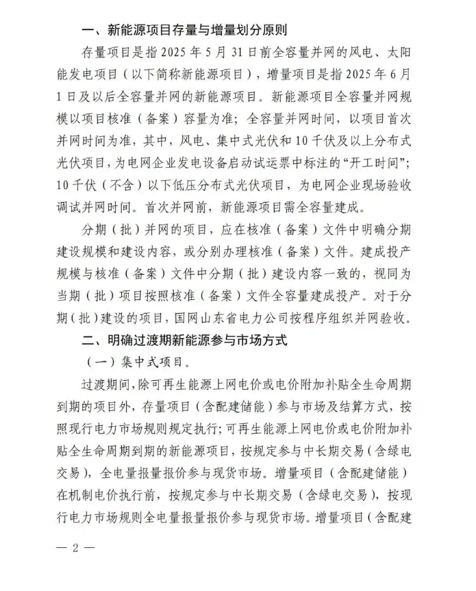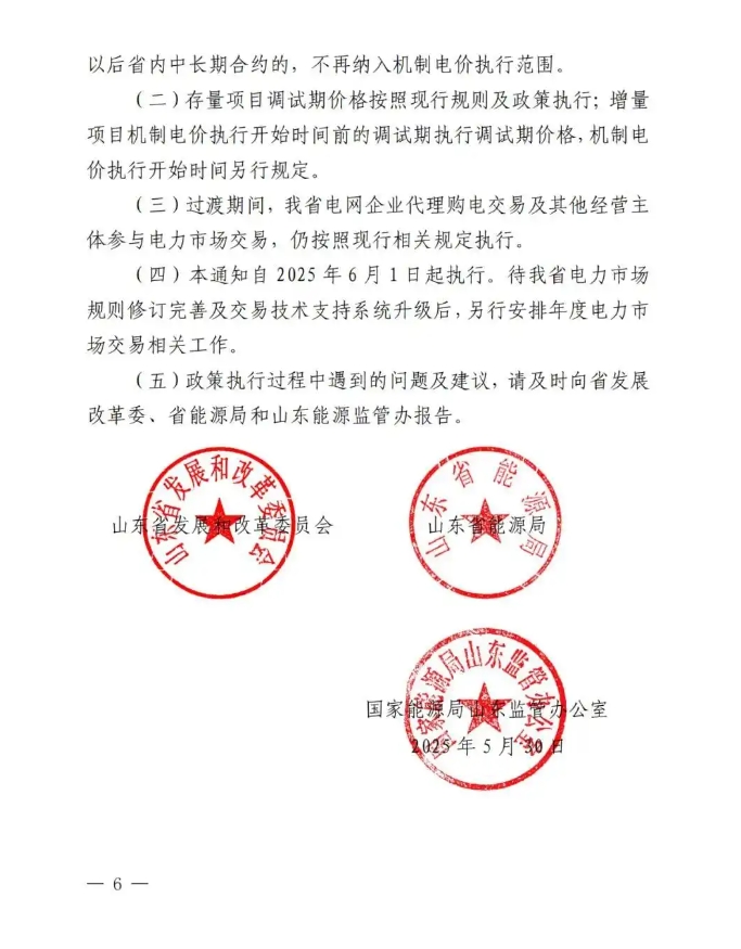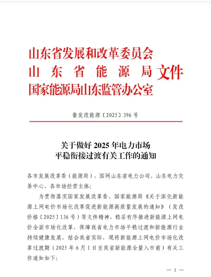 中國(guó)儲(chǔ)能網(wǎng)訊:5月30日,山東省發(fā)改委、山東省能源局、國(guó)家能源局山東監(jiān)管辦聯(lián)合印發(fā)《關(guān)于做好 2025 年電力市場(chǎng)平穩(wěn)銜接過(guò)渡有關(guān)工作的通知》,就6月1日至開(kāi)始執(zhí)行機(jī)制電價(jià)時(shí)間段的新能源項(xiàng)目給出有關(guān)要求。