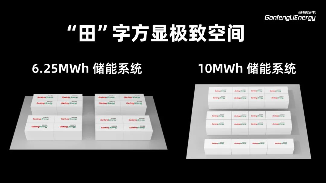 作為行業(yè)內唯一一體化單集裝箱系統(tǒng)儲能容量高達10MWh的儲能系統(tǒng),體積能量密度可達146Wh/L,其創(chuàng)新的模塊化設計可實現(xiàn)規(guī)?;瘧?,為GWh級大型儲能電站建設提供了高效解決方案。與傳統(tǒng)20尺5MWh集裝箱系統(tǒng)相比,贛鋒10MWh儲能系統(tǒng)在單位面積能量密度上實現(xiàn)顯著提升,大幅減少占地面積,有效降低了土地投資成本和場站初始投資成本。