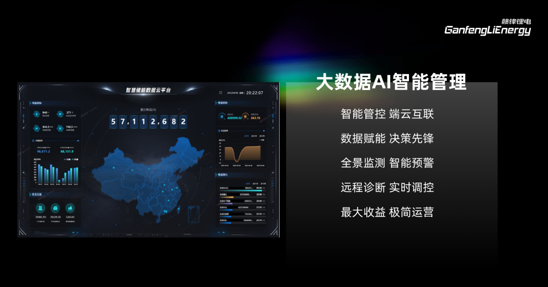 依托大數據智能管理平臺與AI決策引擎,贛鋒鋰電儲能系統(tǒng)構建了“云-邊-端”三級智慧中樞,在儲能系統(tǒng)端實現(xiàn)端云互聯(lián)、智能管控,通過全景監(jiān)測和智能預警功能對儲能系統(tǒng)進行全方位實時監(jiān)控,一旦出現(xiàn)異常,系統(tǒng)可迅速響應并遠程診斷,及時實施精準調控。同時,數據賦能決策,為系統(tǒng)運營提供有力支持,助力實現(xiàn)最大收益與極簡運營,確保儲能系統(tǒng)安全、高效、穩(wěn)定運行。