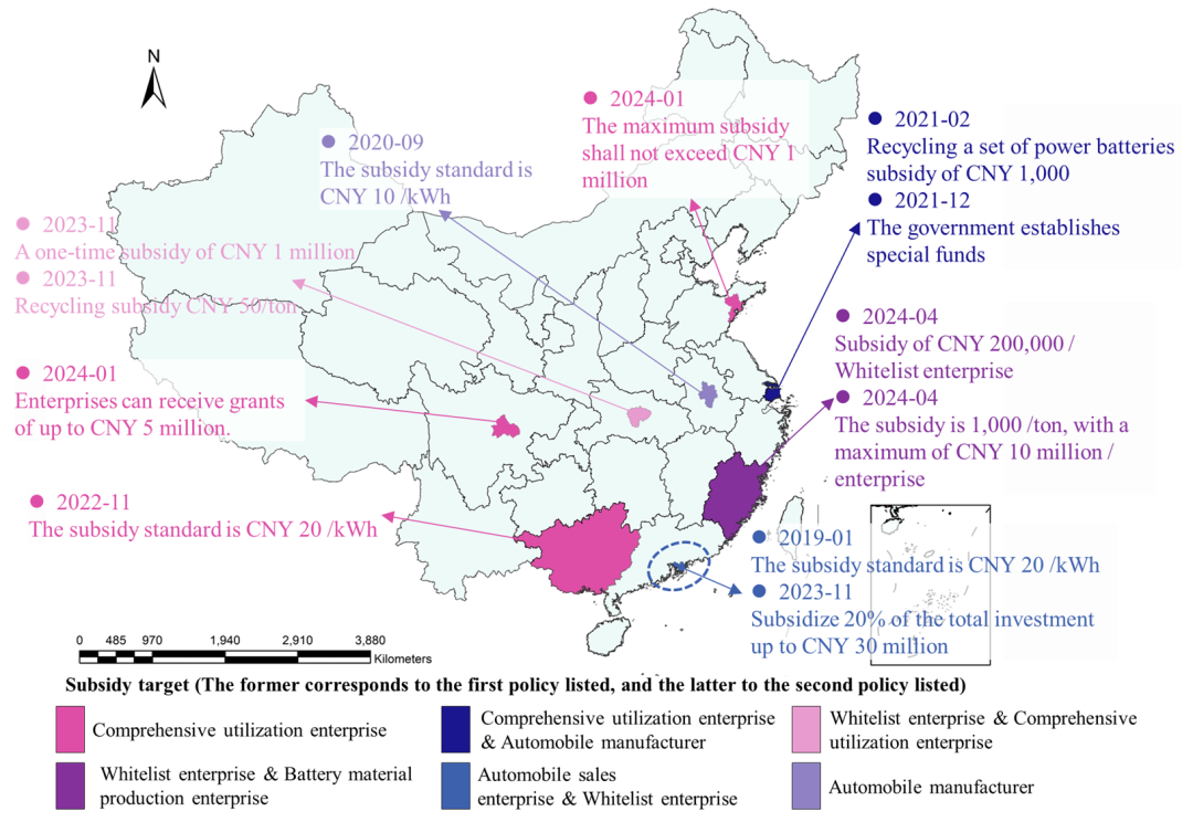 圖2 2020年5月至2024年,地方政府推進(jìn)動力電池回收利用的補(bǔ)貼政策