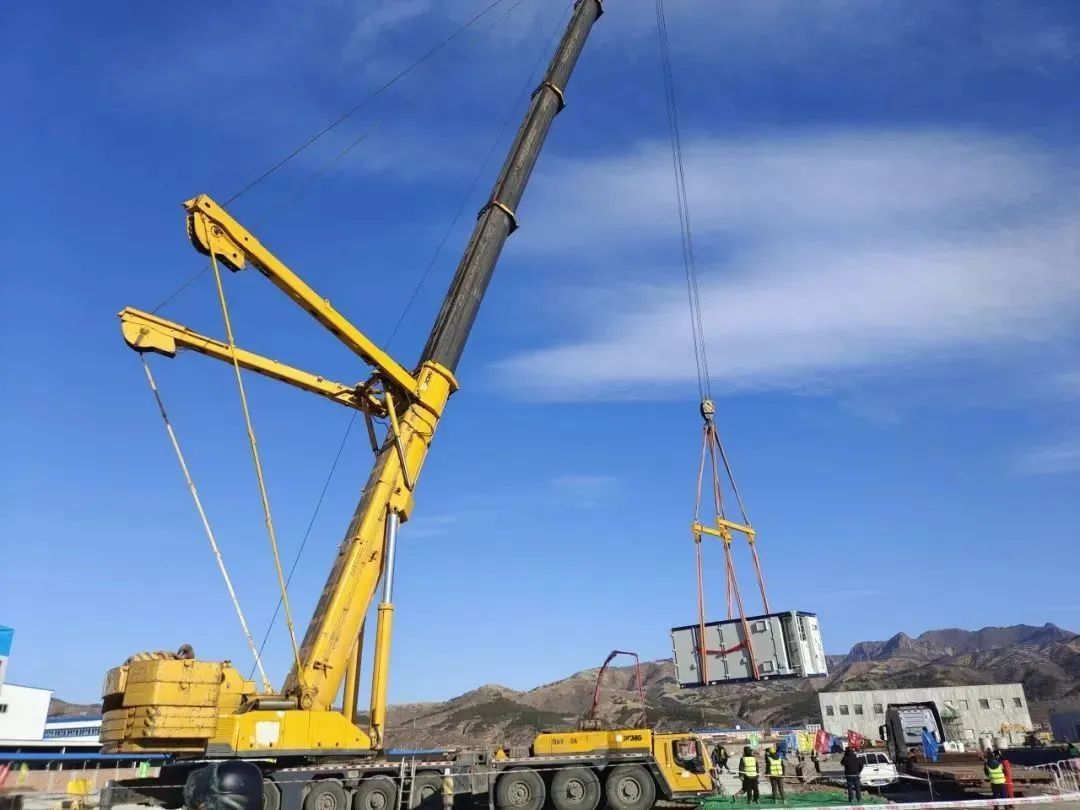 項目主要吊裝構(gòu)件為240臺儲能電池艙和60臺電控艙,單件重量分別為43噸、35噸,均超過300千牛起重設(shè)備的安裝和拆卸,屬于超危大工程,為此采用大型儲能設(shè)備起重吊裝技術(shù),運(yùn)用500噸全地面起重機(jī)作為主吊車,根據(jù)設(shè)備的重量、尺寸、重心位置,以及吊裝現(xiàn)場的環(huán)境條件,定制智能吊裝方案及吊裝作業(yè)應(yīng)急預(yù)案,明確應(yīng)急組織和責(zé)任,在吊裝作業(yè)前、作業(yè)過程中以及作業(yè)結(jié)束后分別進(jìn)行安全檢查與評估,以確保吊裝作業(yè)安全平穩(wěn)進(jìn)行。