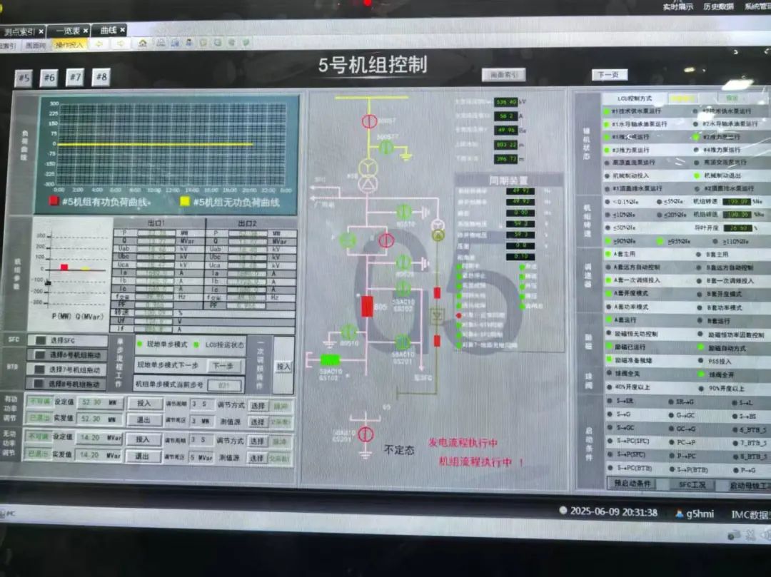 中國儲能網(wǎng)訊:2025年6月9日20點30分57秒, 梅州抽水蓄能電站二期工程繼以變頻啟動裝置(SFC)拖動抽水調(diào)相(CP)工況啟動后,首次實現(xiàn)了發(fā)電工況并網(wǎng)一次成功,順利實現(xiàn)機(jī)組出力50兆瓦,運行15分鐘以后甩負(fù)荷停機(jī)。首次發(fā)電并網(wǎng)過程中,機(jī)組狀態(tài)控制良好,各系統(tǒng)運行穩(wěn)定,各項指標(biāo)優(yōu)良,標(biāo)志著梅蓄二期電站首臺機(jī)組調(diào)試工作取得重大階段性進(jìn)展。