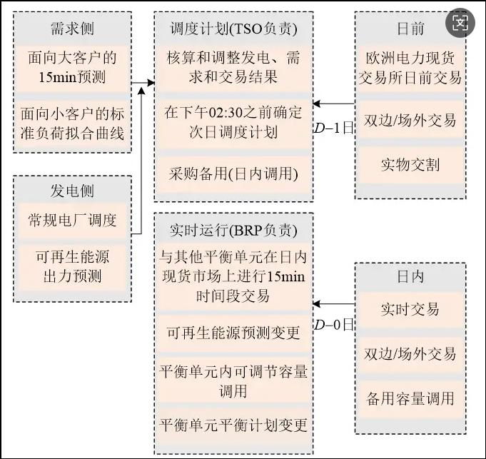 圖1 德國(guó)電力市場(chǎng)與電力調(diào)度時(shí)序關(guān)系
