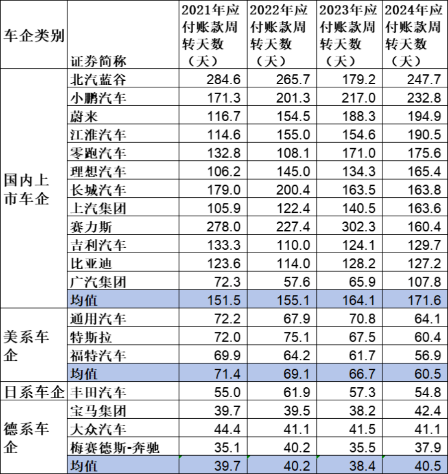 有分析認為,特斯拉的應(yīng)付賬款管理效率與其全球供應(yīng)鏈布局密切相關(guān),其應(yīng)付賬款周轉(zhuǎn)天數(shù)從2022年的75.08天持續(xù)改善至2024年的60.36天,這反映出成熟企業(yè)在供應(yīng)鏈協(xié)同方面的系統(tǒng)化能力。相比之下,國內(nèi)車企在快速擴張過程中更傾向于通過延長賬期緩解資金壓力。