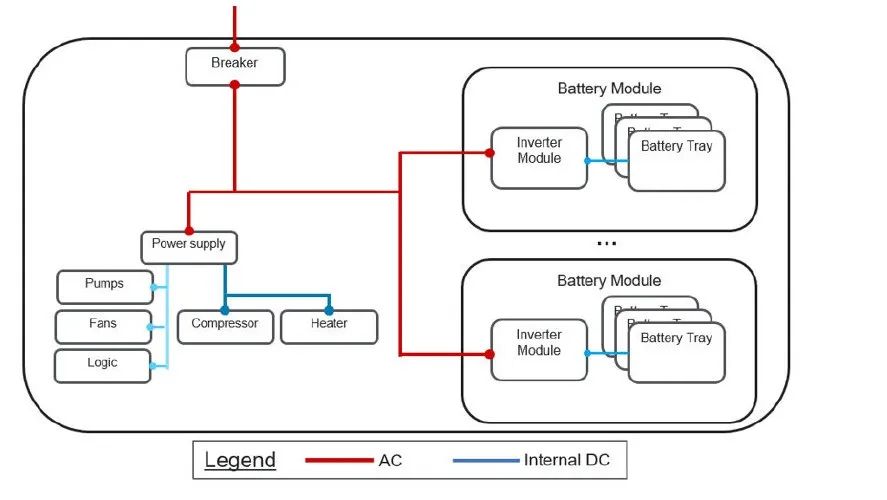 BMS監(jiān)測電池的電壓、電流、SOC等關(guān)鍵數(shù)據(jù)點,此外還提供對任何異常情況的控制和保護,每個電池模塊都配備了一個專用的BMS,一個艙級總線控制器監(jiān)控所有電池模塊在的交流輸出數(shù)據(jù)。關(guān)鍵BMS參數(shù)包括電池模塊欠壓、電池組過壓/欠壓、電池模塊過熱、溫度信號丟失和電池模塊過流。如果出現(xiàn)任何異常情況,BMS通常會首先發(fā)出告警,然后在達到一定閾值時進行控制和保護。