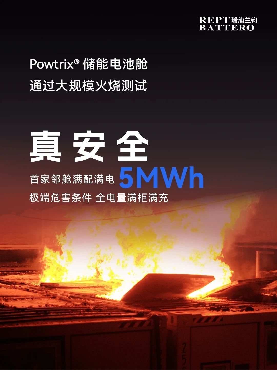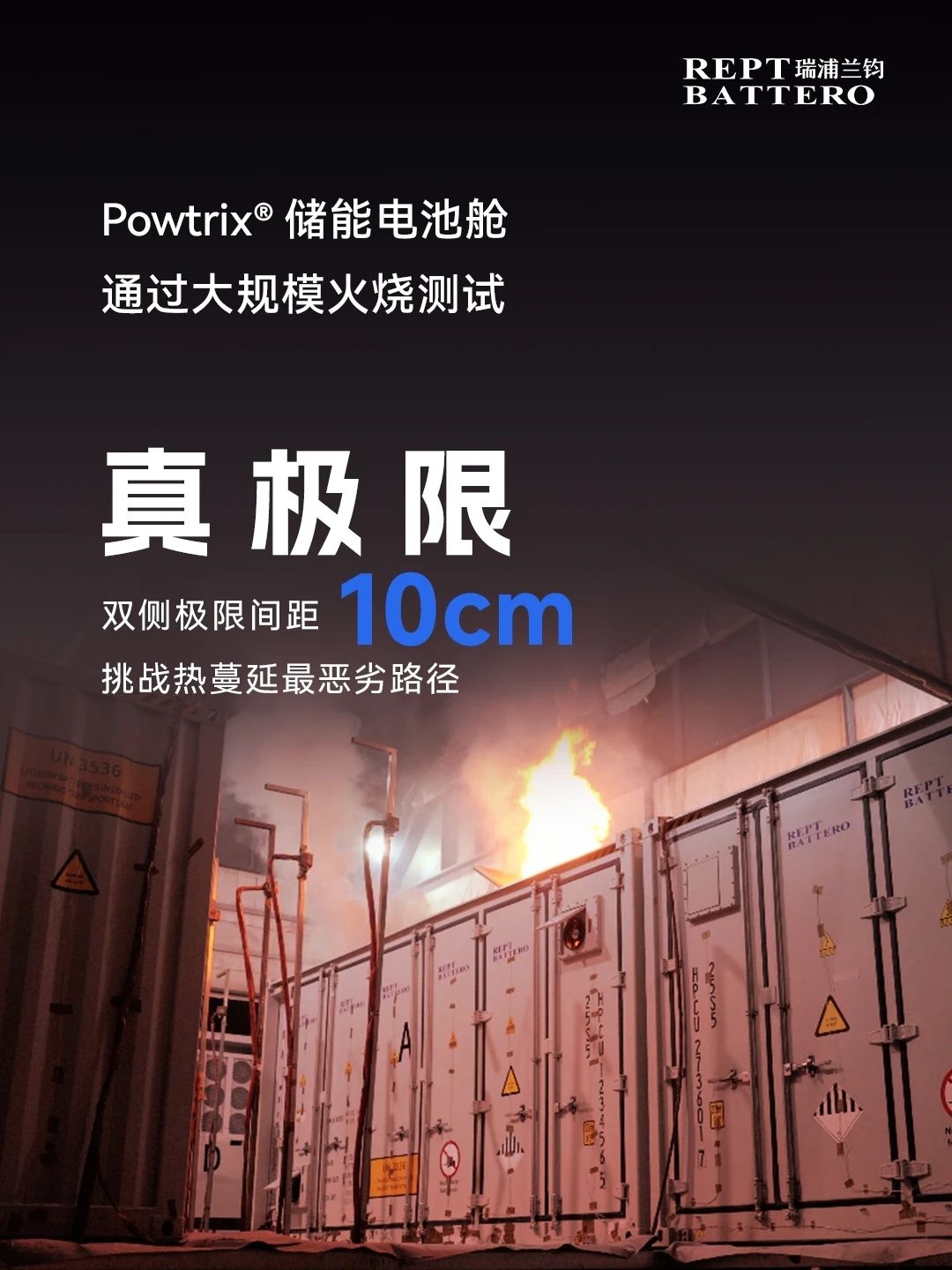 中國儲能網訊:瑞浦蘭鈞鄰艙全電量滿配滿充5MWh的Powtrix®儲能電池艙成功通過 CSA/ANSI C800 極端安全測試。