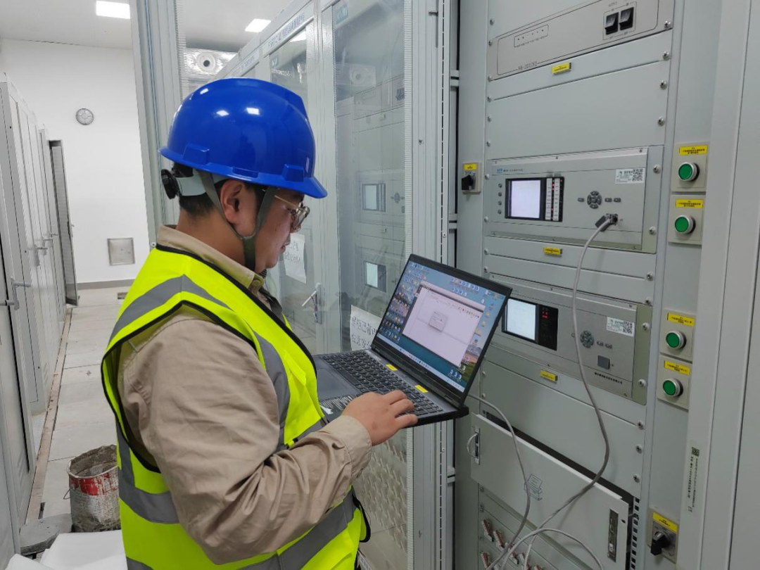 ▲變電公司工程技術(shù)人員在現(xiàn)場開展保護(hù)設(shè)備調(diào)試