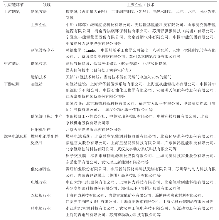表1 國(guó)內(nèi)氫能產(chǎn)業(yè)供應(yīng)鏈基本情況