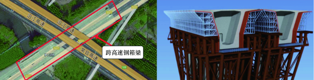 在公路交通基礎(chǔ)設(shè)施的工程建設(shè)階段,運(yùn)用數(shù)字化勘察設(shè)計(jì)、智慧工地建設(shè)、工廠化建設(shè)和數(shù)字化交付等手段,有效縮短了工程建設(shè)工期,提高了工程建設(shè)效率,降低了工程建設(shè)成本,提高了工程建設(shè)質(zhì)量,延長(zhǎng)了結(jié)構(gòu)壽命,提升了施工過(guò)程的安全性和管理效率。例如,G524常熟段智慧公路科技示范工程,為提高信息化與智能化施工水平,依據(jù)橋梁主體設(shè)計(jì)圖紙,搭建整橋建筑信息模型(BIM),并在施工過(guò)程中根據(jù)設(shè)計(jì)變更及現(xiàn)場(chǎng)技術(shù)資料對(duì)模型進(jìn)行更新,實(shí)現(xiàn)由二維設(shè)計(jì)圖紙向三維信息模型的轉(zhuǎn)變,提升施工可視化程度。同時(shí),通過(guò)無(wú)人機(jī)航拍激光掃描,結(jié)合二維設(shè)計(jì)圖紙繪制BIM模型,實(shí)現(xiàn)三維碰撞檢查、場(chǎng)布模型搭建、施工組織與交通組織等功能,如圖1所示。