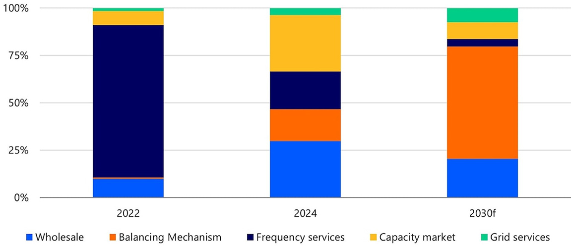 圖 英國電池儲(chǔ)能收入結(jié)構(gòu)變化