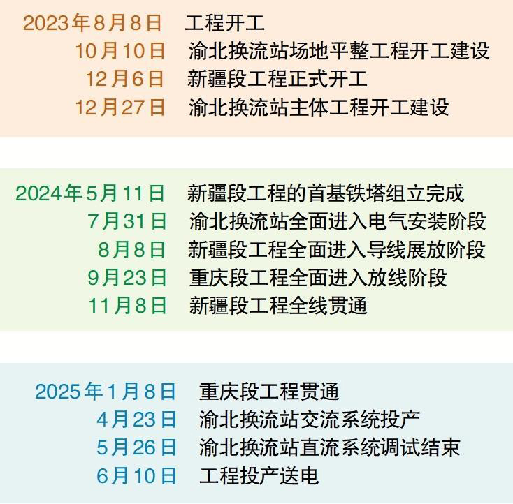 6月10日,哈密—重慶±800千伏特高壓直流輸電工程(也稱“疆電入渝”工程)投產(chǎn)送電。該工程是我國(guó)首個(gè)投產(chǎn)送電的“沙戈荒”新能源基地外送特高壓直流輸電工程,是西南地區(qū)首個(gè)特高壓直流受入工程,是我國(guó)第三條“疆電外送”大通道。工程只需7毫秒,就能將新疆哈密優(yōu)質(zhì)的風(fēng)能、太陽(yáng)能等資源轉(zhuǎn)化成電能,送達(dá)重慶。