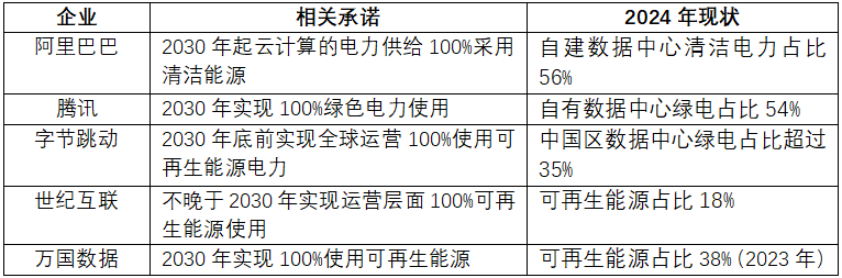 表2:國內(nèi)部分?jǐn)?shù)據(jù)中心建設(shè)企業(yè)清潔用能承諾及現(xiàn)狀