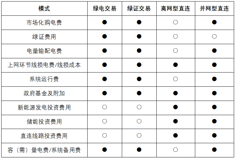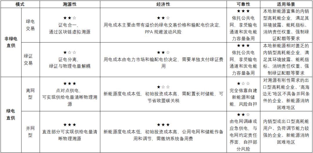 表6:四種綠電采購模式綠色、經(jīng)濟、可靠性對比