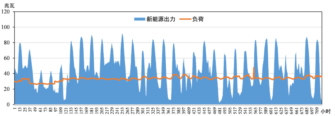 圖3:2024年4月(上圖)和9月(下圖)新能源出力和負(fù)荷曲線