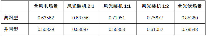 表5:不同風(fēng)光裝機配比下數(shù)據(jù)中心單位用電成本(元/千瓦時)