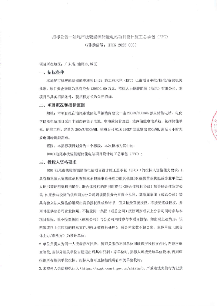 中國儲能網(wǎng)訊:6月18日,廣東兩項(xiàng)目儲能電站EPC招標(biāo)啟動??傄?guī)模達(dá)400MW/1600MWh。