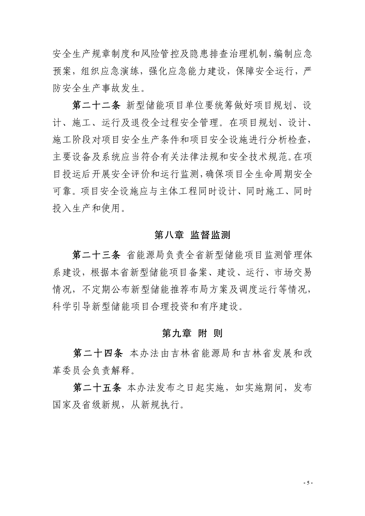 吉林省能源局 吉林省發(fā)展和改革委員會(huì)關(guān)于印發(fā)《吉林省新型儲能項(xiàng)目管理辦法(暫行)》的通知