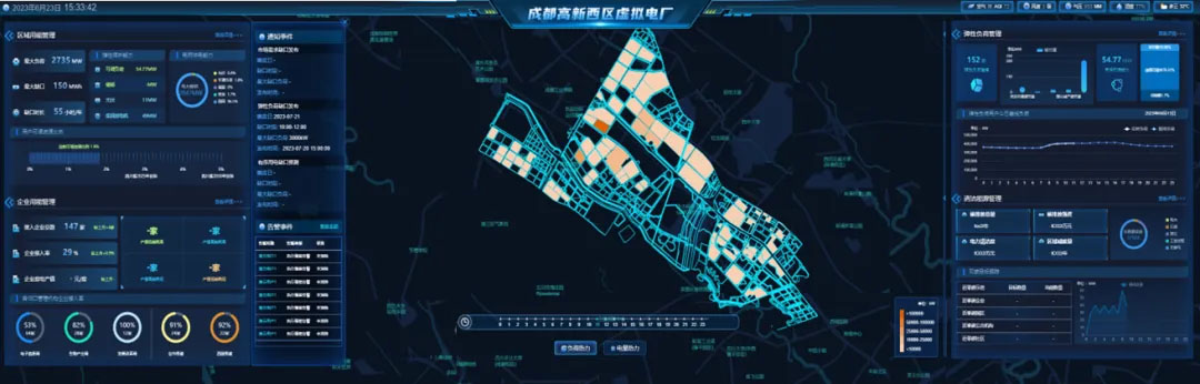 2023年9月,成都高新區(qū)首座虛擬電廠在高新西區(qū)上線運行。作為中西部地區(qū)唯一入選國家綠色低碳示范項目的虛擬電廠平臺,成都高新區(qū)虛擬電廠通過物聯(lián)網(wǎng)、云計算和人工智能技術(shù),將可調(diào)節(jié)負荷、分布式光伏及儲能設(shè)備連接成網(wǎng),形成區(qū)域電網(wǎng)柔性調(diào)節(jié)關(guān)鍵力量的“智慧充電寶”。