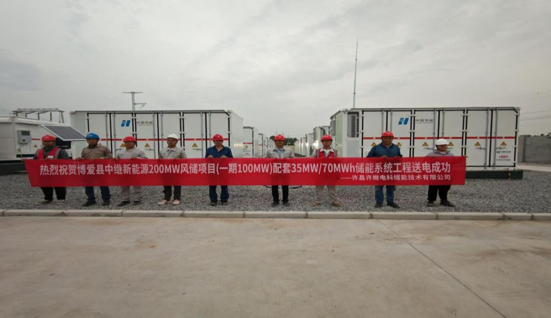 2025年5月31日,博愛縣中繼新能源200MW風(fēng)儲(chǔ)項(xiàng)目(一期100MW)配套35MW/70MWh儲(chǔ)能系統(tǒng)工程送電成功。項(xiàng)目位于河南省焦作市博愛縣南部孝敬鎮(zhèn)境內(nèi),風(fēng)電場(chǎng)一期規(guī)劃總裝機(jī)容量100MW, 擬安裝18臺(tái)單機(jī)容量為5.56MW 風(fēng)電機(jī)組,并配置35MW/70MWh儲(chǔ)能系統(tǒng)。許繼電科儲(chǔ)能為該項(xiàng)目提供了全套的儲(chǔ)能設(shè)備,包含7套儲(chǔ)能單元以及后臺(tái)操控、能量管理、協(xié)調(diào)控制等配套系統(tǒng)。