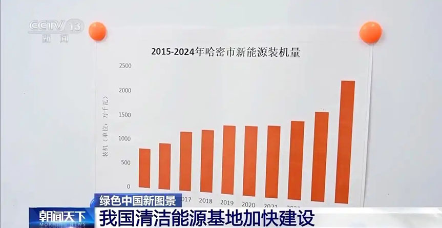 在哈密市發(fā)展改革委,記者看到了一張跨越10年的清潔能源并網(wǎng)發(fā)電的示意圖。根據(jù)預(yù)計,2024年至2025年年底,哈密新增并網(wǎng)1360萬千瓦新能源發(fā)電項目。去年,新疆明確將風(fēng)電、光伏項目由自治區(qū)(省)級備案下放至各地州市屬地備案。