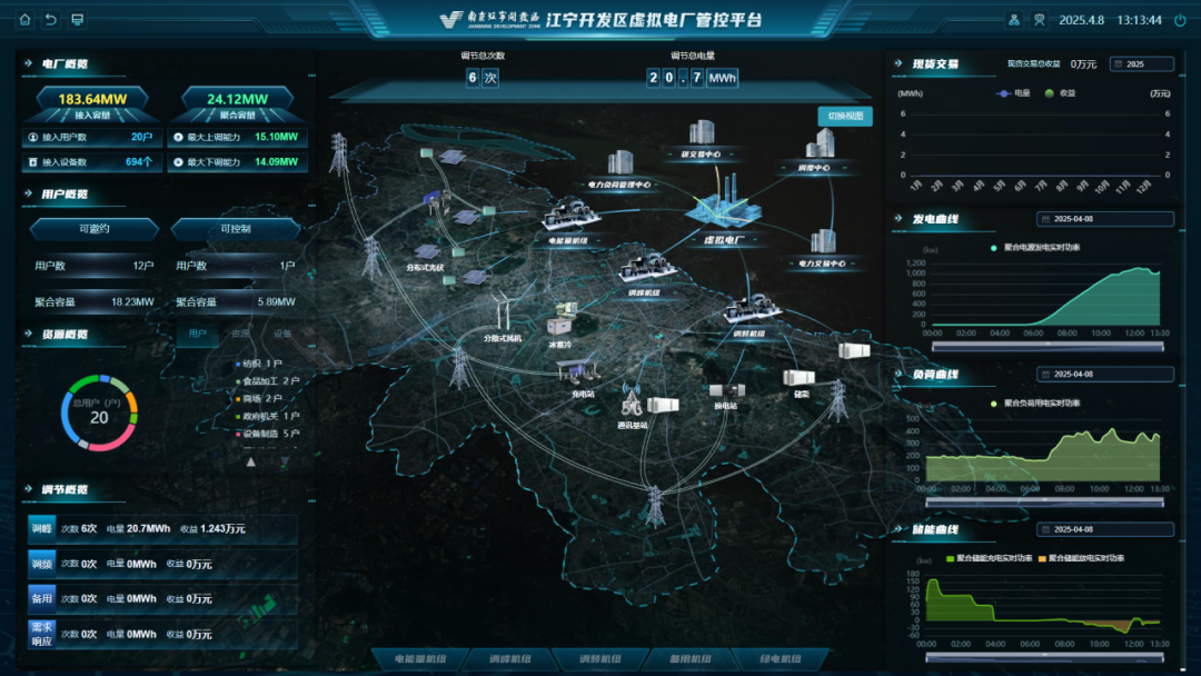 江寧開(kāi)發(fā)區(qū)虛擬電廠(國(guó)家發(fā)改委2025年4月公布的綠色低碳先進(jìn)技術(shù)示范項(xiàng)目)采用工業(yè)互聯(lián)網(wǎng)、物聯(lián)網(wǎng)、功率和負(fù)荷智能預(yù)測(cè)、智能優(yōu)化調(diào)度等技術(shù),主要建設(shè)一套能碳虛擬電廠平臺(tái),對(duì)園區(qū)企業(yè)碳排放進(jìn)行全過(guò)程精細(xì)化管理和全鏈條管控。項(xiàng)目建成后,實(shí)現(xiàn)300MW可調(diào)資源聚合能力,其中包含100MW分布式新能源等綠色電源和200MW樓宇空調(diào)等靈活負(fù)荷,為區(qū)域電網(wǎng)提供100MW調(diào)峰能力、20MW調(diào)頻能力,促進(jìn)區(qū)域新能源消納率提升至90%以上。