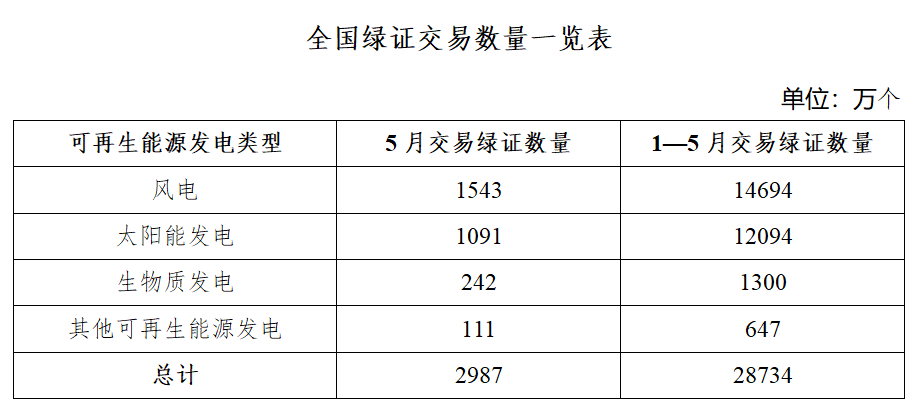 2025年5月,全國(guó)交易綠證2987萬個(gè),其中綠色電力交易綠證1005萬個(gè)。2025年1-5月,全國(guó)交易綠證2.87億個(gè),其中綠色電力交易綠證9623萬個(gè)。(調(diào)減1-4月交易綠證數(shù)量168萬個(gè))
