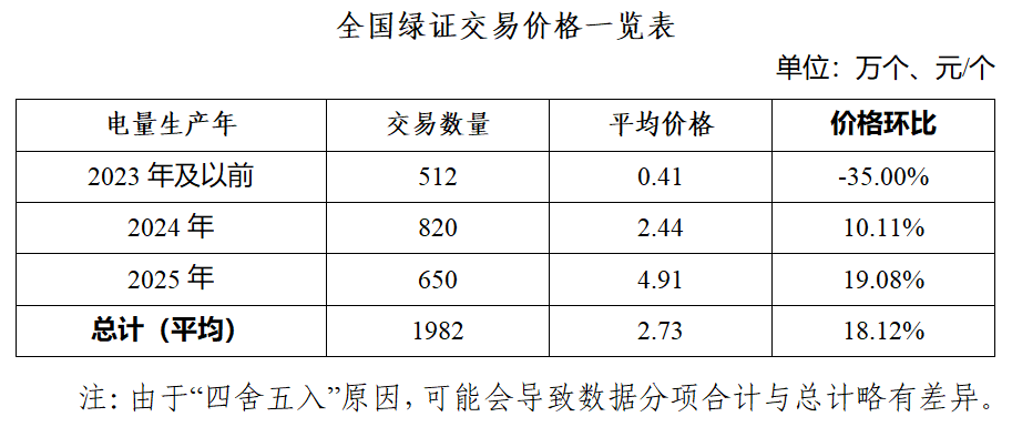 2025年5月,全國(guó)綠證單獨(dú)交易1982萬個(gè),交易平均價(jià)格為2.73元/個(gè),環(huán)比增長(zhǎng)18.12%。