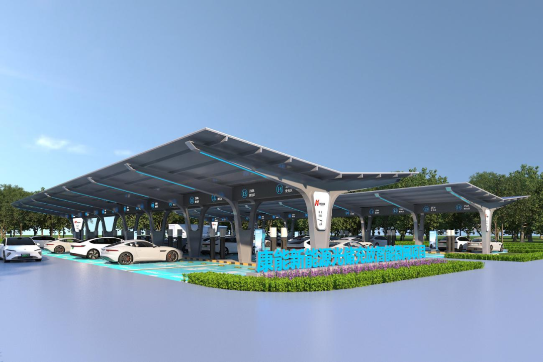 康能新能源公司重磅推出的“光儲充放”V2G智能微網(wǎng)項目融合了光伏發(fā)電、儲能系統(tǒng)、智能充電以及車輛到電網(wǎng)(V2G)四大核心技術(shù),形成了一個高度集成、協(xié)同運作的能源閉環(huán)系統(tǒng)。項目中的光伏發(fā)電如同能源生產(chǎn)的“綠色引擎”,日均發(fā)電量可達959kWh,為充電服務(wù)提供清潔電力“源頭活水”。儲能系統(tǒng)配置261kWh,如同“電力水庫”,在電網(wǎng)低谷時段成為“能量倉庫”,在光照充足時儲存多余電能,在用電高峰或光照不足時釋放能量,平抑電價波動;智能充電設(shè)施布局360kW超充終端16個、慢充終端38個,V2G充放電2個,可同時滿足56臺新能源汽車即插即充,最快15分鐘充電80%,并通過智能調(diào)度系統(tǒng)優(yōu)化充電排隊效率;而V2G(車輛到電網(wǎng))更是項目的一大亮點,它打破了傳統(tǒng)能源單向流動的模式,讓新能源汽車在充電的同時,還能將車輛電池中的電能反向輸送回儲能電網(wǎng),實現(xiàn)車與儲能電網(wǎng)之間的雙向互動。通過“光儲充放一體化”運作,充電站自身用電成本降低約30%,這部分紅利直接轉(zhuǎn)化為惠民電價。