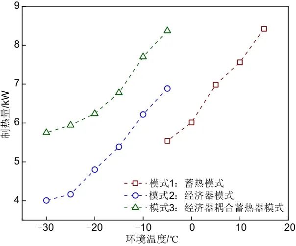 圖5 不同運行模式下制熱量隨環(huán)境溫度的變化