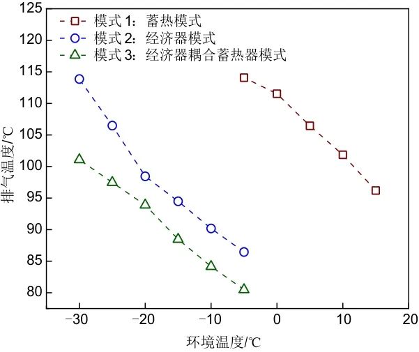 圖9 不同運行模式下壓縮機的排氣溫度隨環(huán)境溫度的變化