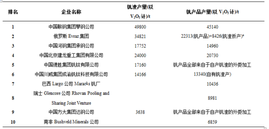 表3:2022年全球主要釩生產企業(yè)(非加工型)產量