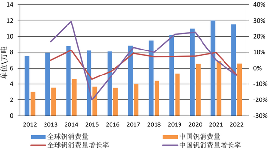 綜上所述,短期全球釩在鋼鐵領域消費量受中國影響出現下滑。長期來看,全球鋼鐵需求以及釩在鋼鐵中消費強度持續(xù)增長,釩在鋼鐵領域的需求仍將保持穩(wěn)定增長。
