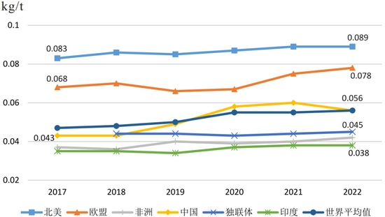 釩在鋼鐵中消費強度存在地區(qū)差異。隨著中國鋼鐵工業(yè)綠色低碳轉型,高強鋼需求增長帶動其產量持續(xù)增長,釩在鋼鐵中的消費強度將出現結構性增加。印度、東南亞等地區(qū)新興國家逐漸步入工業(yè)化初期,城鎮(zhèn)化進程不斷加速,人均鋼消費量將快速增加,釩在鋼鐵中消費強度也將持續(xù)增加。