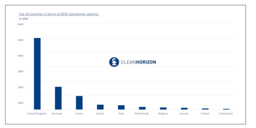 在考察歐洲運營電池儲能系統(tǒng)的主要市場時,英國以顯著的優(yōu)勢脫穎而出。英國儲能市場增長是由幾年前舉行的定向拍賣推動的,這些拍賣分配了大量儲能容量。此外,英國已經(jīng)建立了利潤豐厚的輔助服務(wù)市場,為儲能系統(tǒng)吸引了大規(guī)模投資。