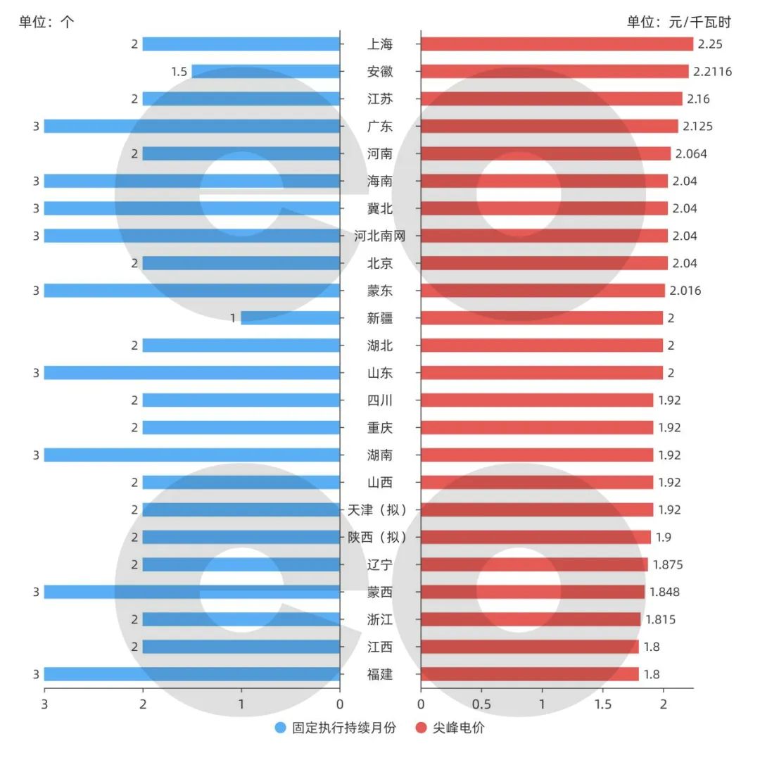 ①北京、浙江尖峰電價(jià)為不同用電類型尖峰電價(jià)均值;