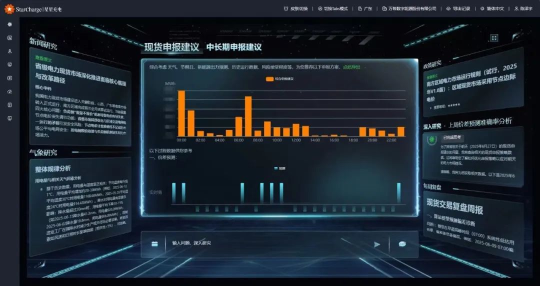 場(chǎng)景一:央/地發(fā)電集團(tuán)的能源決策變革過去:團(tuán)隊(duì)熬夜分析海量數(shù)據(jù),憑經(jīng)驗(yàn)判斷各省政策、電價(jià)走勢(shì),決策如履薄冰?,F(xiàn)在:打開“AI-Agents領(lǐng)航艙”,策略Agent瞬間生成多套交易方案并預(yù)測(cè)盈虧;政策Agent實(shí)時(shí)推送并解讀最新規(guī)則變化;風(fēng)險(xiǎn)Agent提前預(yù)警市場(chǎng)異動(dòng)。你能一鍵確認(rèn)最優(yōu)策略,效率提升數(shù)倍,決策信心大增。