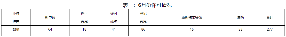 一、6月份承裝(修、試)電力設(shè)施許可情況