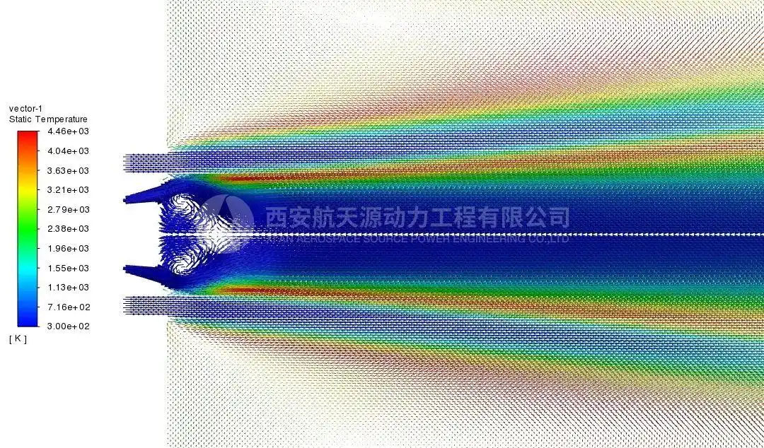 ▲氫氣燃燒爐爐內(nèi)溫度分布云圖