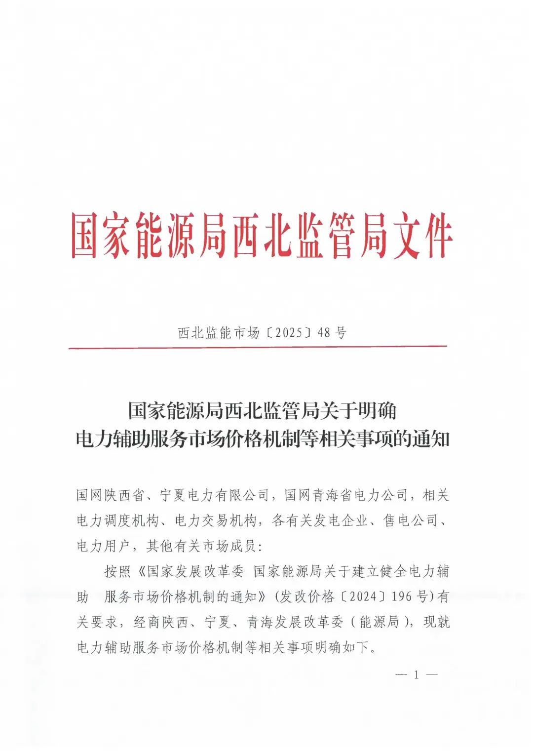 中國儲能網(wǎng)訊:7月1日,國家能源局西北監(jiān)管局發(fā)布關于明確電力輔助服務市場價格機制等相關事項的通知。