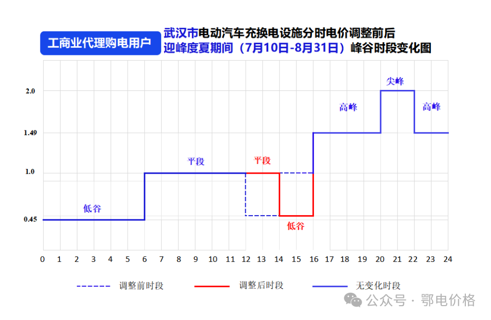 在此背景下,2025年6月25日,湖北省發(fā)改委公布了《關(guān)于2025年迎峰度夏期間臨時(shí)調(diào)整武漢市工商業(yè)電動(dòng)汽車充換電設(shè)施分時(shí)電價(jià)政策的通知》,規(guī)定在2025年迎峰度夏期間(7月10日至9月10日),武漢市執(zhí)行工商業(yè)代理購(gòu)電價(jià)格的電動(dòng)汽車充換電設(shè)施用電,12:00-14:00由原低谷時(shí)段調(diào)整為平時(shí)段,14:00-16:00由原平時(shí)段調(diào)整為低谷時(shí)段。