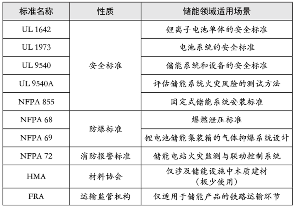 表1 美國進(jìn)口儲(chǔ)能產(chǎn)品主要標(biāo)準(zhǔn)