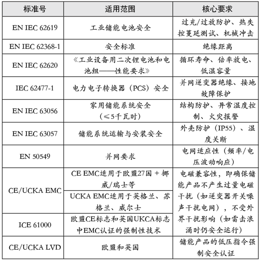 2.歐洲對(duì)進(jìn)口儲(chǔ)能標(biāo)準(zhǔn)要求