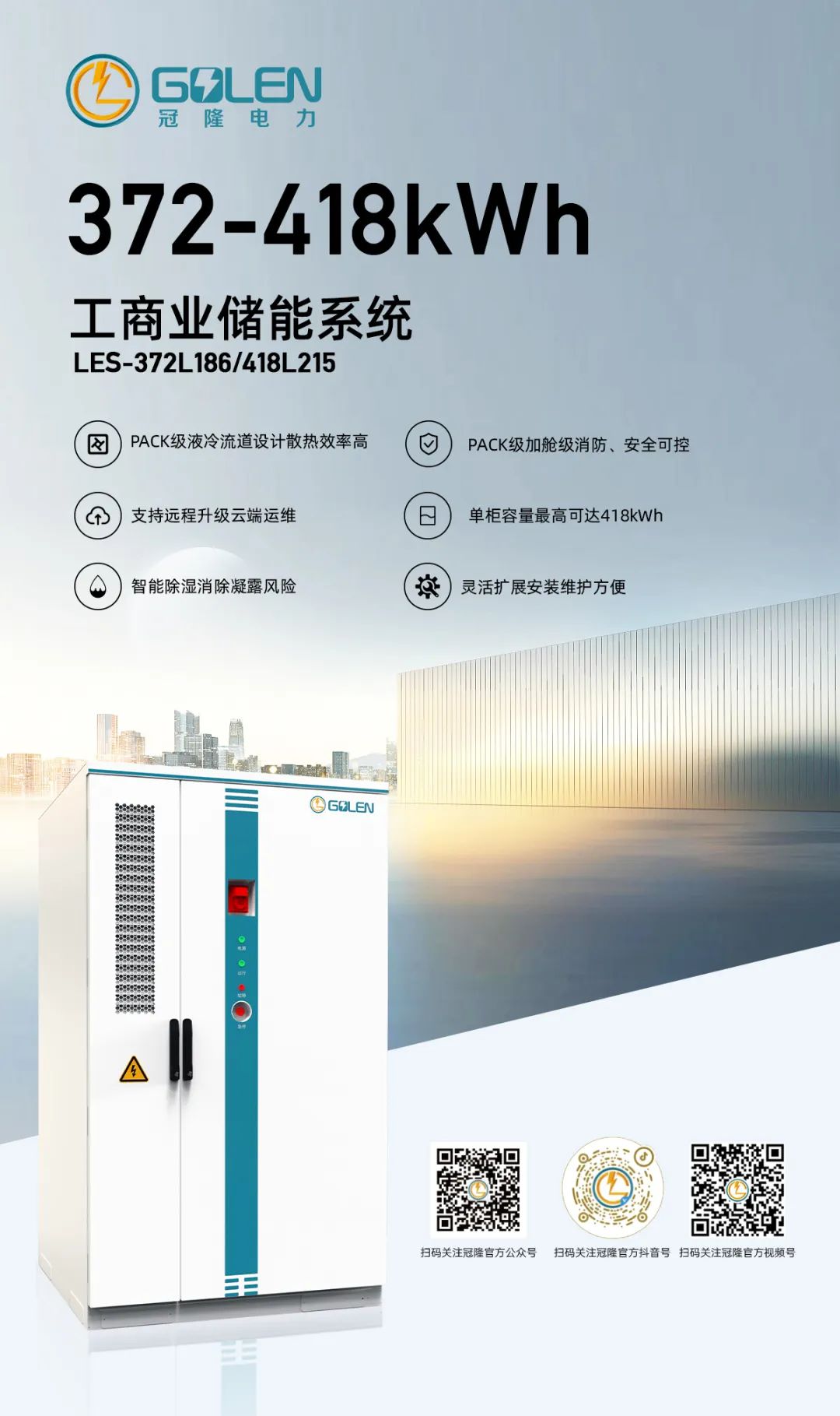 中國儲能網(wǎng)訊:在工商業(yè)儲能領(lǐng)域,高效、穩(wěn)定、安全的電力保障是企業(yè)運營的重要支撐。冠隆電力推出的372-418kWh工商業(yè)儲能系統(tǒng),以實用的技術(shù)與設(shè)計,為工商業(yè)用戶用電管理帶來新選擇。