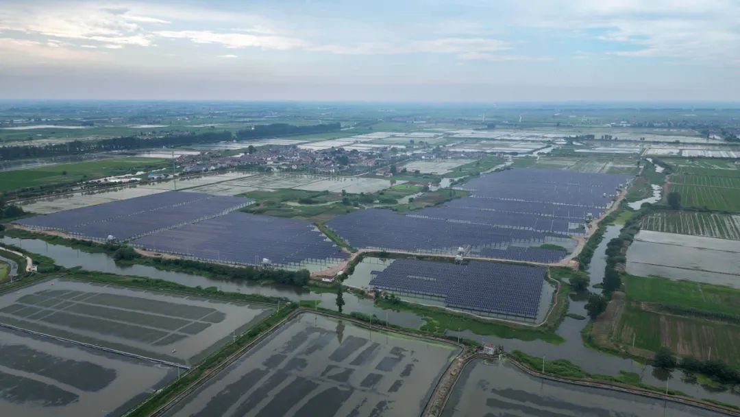 這是位于泰州俞垛的姜堰100MW漁光互補+儲能項目