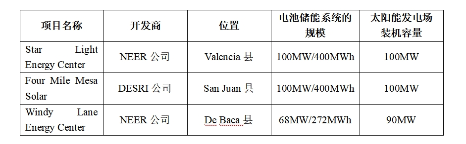 PNM公司正在尋求批準(zhǔn)采購的三個太陽能+儲能項(xiàng)目的詳情如下表所示: