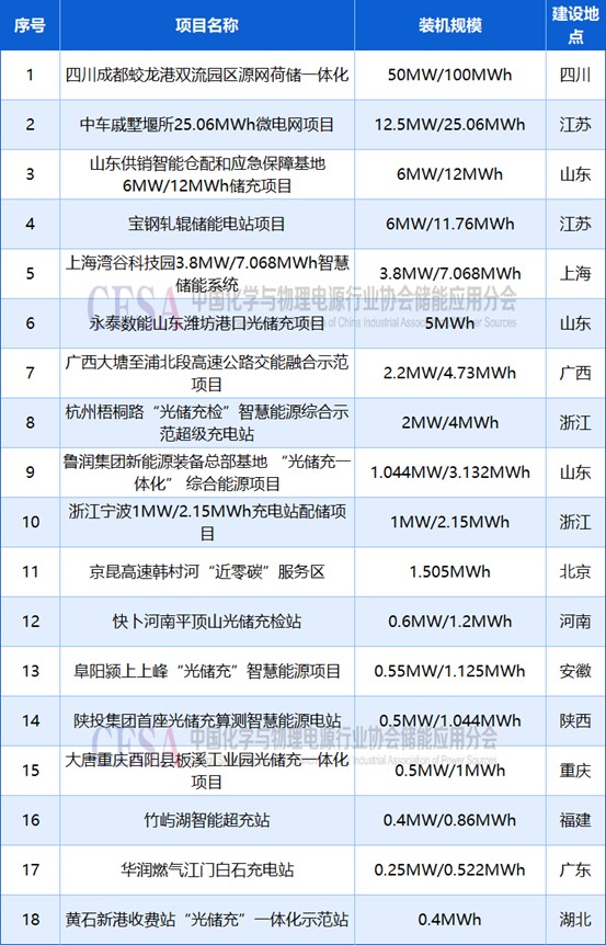 儲充/光儲充項(xiàng)目投運(yùn)項(xiàng)目:2025上半年新增裝機(jī)110.8MW
