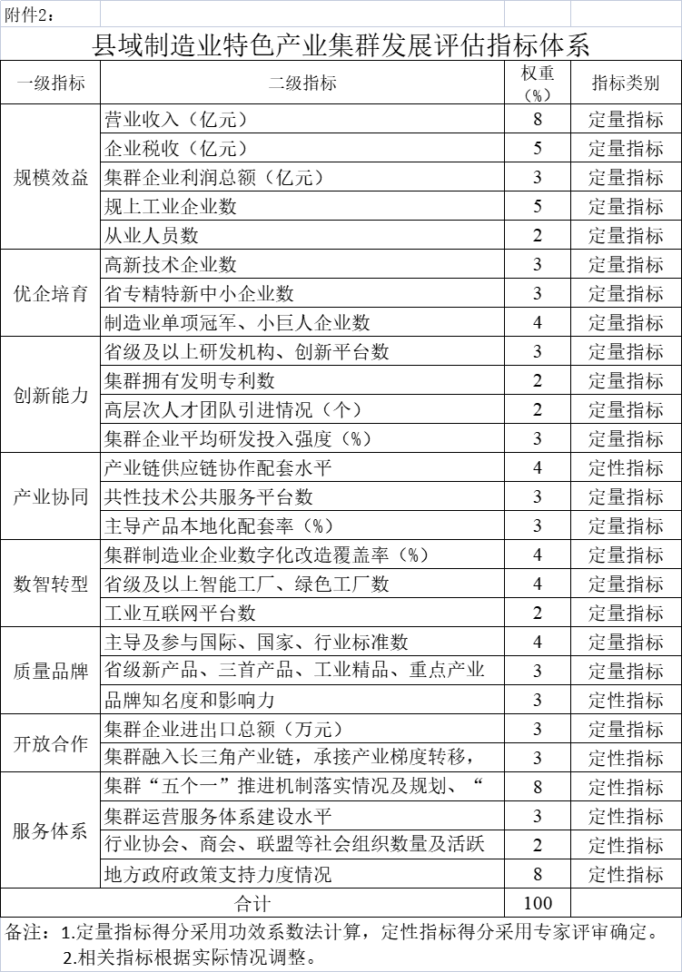 2. 縣域制造業(yè)特色產(chǎn)業(yè)集群發(fā)展評(píng)估指標(biāo)體系