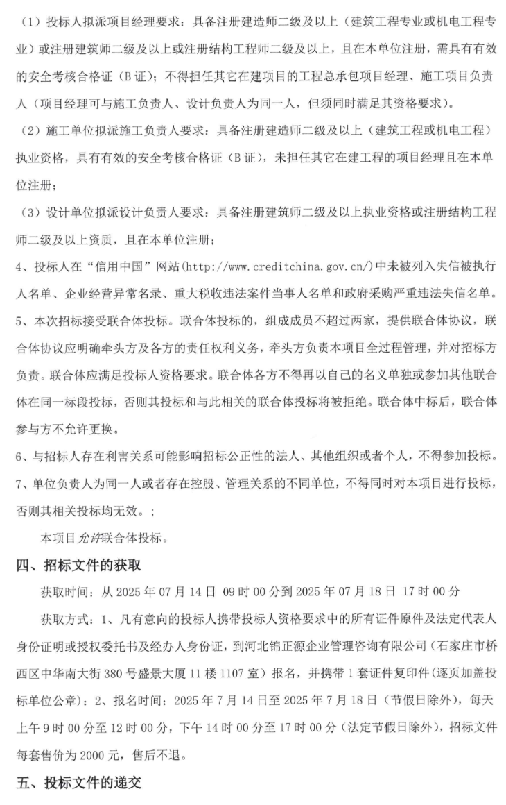 招標范圍:本次招標包括但不限于完成本項目施工圖等相關設計、工程施工及采購,直至竣工驗收合格并整體移交、工程保修期內的缺陷修復和保修工作,同時承擔有關協(xié)調工作。