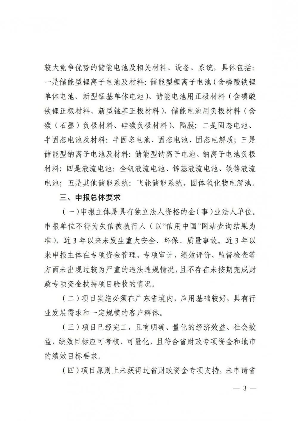 方向4:新型儲(chǔ)能產(chǎn)業(yè)化項(xiàng)目。支持新型儲(chǔ)能產(chǎn)業(yè)領(lǐng)域具備較大競(jìng)爭(zhēng)優(yōu)勢(shì)的儲(chǔ)能電池及相關(guān)材料、設(shè)備、系統(tǒng),具體包括:一是儲(chǔ)能型鋰離子電池及材料:儲(chǔ)能型鋰離子電池(含磷酸鐵鋰單體電池、新型錳基單體電池)、儲(chǔ)能電池用正極材料(含磷酸鐵鋰正極材料、新型錳基正極材料)、儲(chǔ)能電池用負(fù)極材料(含碳(石墨)負(fù)極材料、硅碳負(fù)極材料)、隔膜;二是固態(tài)電池、半固態(tài)電池及材料:半固態(tài)電池、固態(tài)電池、固態(tài)電解質(zhì);三是儲(chǔ)能型鈉離子電池及材料:儲(chǔ)能型鈉離子電池、鈉離子電池負(fù)極材料;四是液流電池:全釩液流電池、鋅基液流電池、鐵鉻液流電池;五是其他儲(chǔ)能系統(tǒng):飛輪儲(chǔ)能系統(tǒng)、固體氧化物電解池。